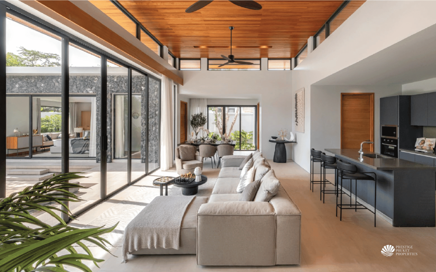 Inspired by modern mid-century design, this 3-bedroom, 3-bathroom villa offers stylish yet practical single-storey living. The home is defined by its airy interiors, warm natural textures, and fluid connection to outdoor spaces. At its heart, a private 8.5m pool provides a relaxing focal point, framed by tropical gardens and sunlit terraces. Designed for comfort and ease, it’s a residence that celebrates simplicity and serenity in one of Thailand’s most breathtaking destinations.